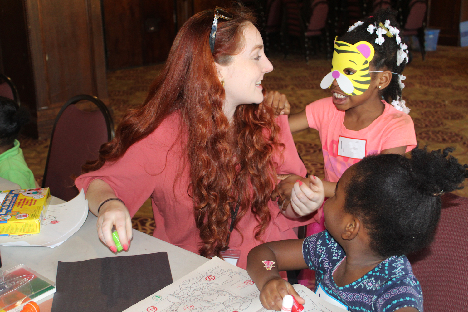 Even though the ballroom at Quality Inn isn’t painted, that doesn’t stop the volunteers from making the space appealing to children each week.