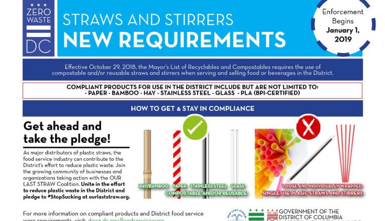 “Where [the Department of Energy & Environment] recognizes that some customers may require plastic straws to consume food or beverages,” he said, “we encourage businesses and organizations to keep a stock of plastic straws available for this purpose.”