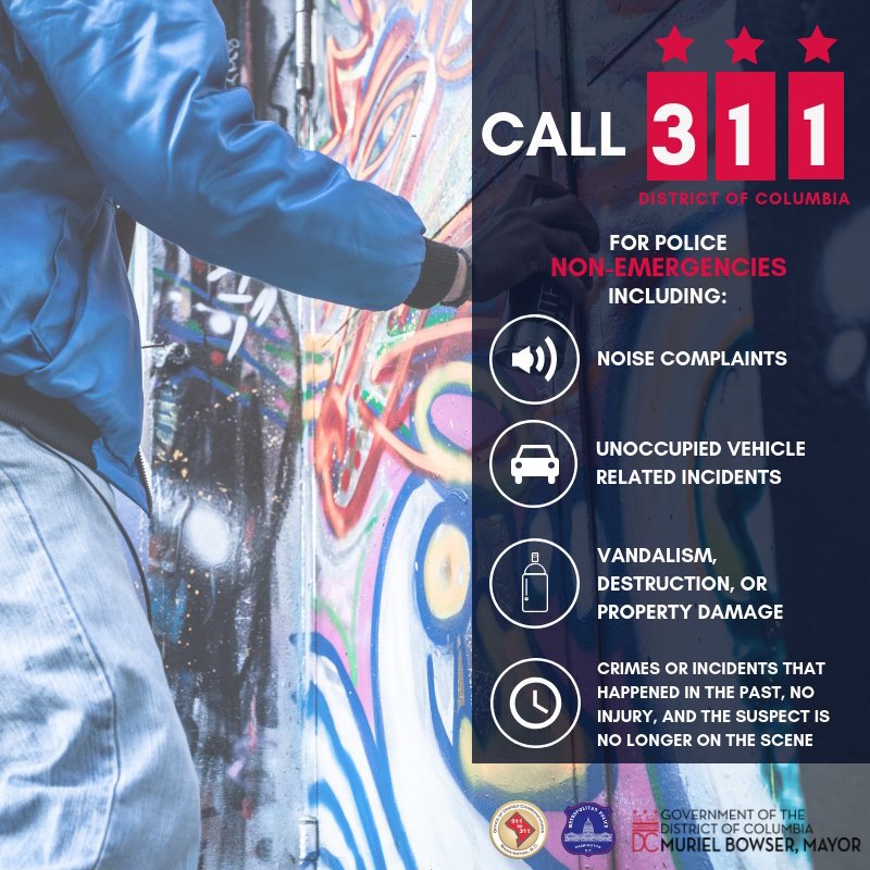In recent years, the 311 number was used exclusively as a portal for people to request city services and obtain information — functions it will continue to serve. After reaching 311, callers should press “1” to reach an operator responsible for handling police non-emergency calls, with additional options available for other service requests. For instance, 311 will soon handle requests for maintenance issues for parks, playgrounds and DC public schools.