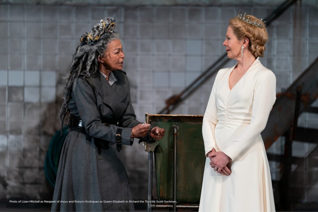 Throughout the show, center stage is occupied by a misogynistic Richard, yet in this production the women wield the greatest power. Although the Duchess of York (Sandra Shipley) and Queen Elizabeth (Robynn Rodriguez) are played one-note, they are the only ones in Richard’s circle to truly defy him. Lizan Mitchell’s Margaret of Anjou reverberates with the presence of an oracle when issuing her prophetic curses — perhaps delivering too much spectacle, though it’s fitting that the conscience of such a play would feel out of place.