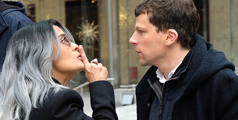 With the help of director David Fincher and screenwriter Aaron Sorkin, actor Jesse Eisenberg made Facebook founder Mark Zuckerberg a compelling dramatic figure in the 2010 drama The Social Network. A new film from writer-director Kim Nguyen puts the actor at the center of another technological thriller, but the results are much less satisfying. Eisenberg stars as Vincent Zaleski, who teams up with his cousin Anton (Alexander Skarsgård) in an attempt to build a fiber-optic line capable of transmitting stock exchange data from New York to Kansas in just 16 milliseconds. In conjunction with sophisticated algorithms, such numbers provide high-frequency traders a miniscule but significant advantage over their competitors by giving them a hairbreadth jump on changing stock prices. But their scheme runs afoul of Eva (Salma Hayek), a securities trading exec who’s upset that her rogue employees didn’t give her company dibs on this action.