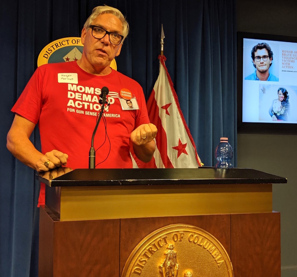 Roger Marmet is a father and DC business owner. A year ago, his son was shot and killed while driving across DC in rush-hour traffic. (Photo courtesy of Moms Demand Action DC)
