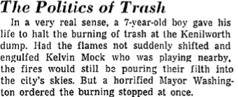 Open burning was finally halted in 1968 after 7-year-old Kelvin Mock died at Kenilworth Park. When winds shifted, the flames from the burning garbage unexpectedly surrounded Kelvin, who was playing nearby with friends.