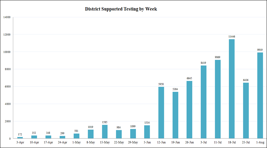 The District’s supported testing at public sites and at congregate care settings includes 71,077 total tests.