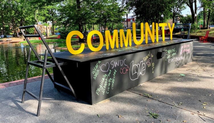 2. Ward 6 Neighborhoods: The Southwest Business Improvement District is unable to host its regular Sunday Supper events due to the pandemic, so the organizers have reimagined the series as “Ode to Sunday Suppers.” An interactive public art installation by DC-based artist Beth Ferraro is on display at the Southwest Duck Pond, on the corner of 6th and I streets SW. It includes two chairs on either end of a long table emblazoned with the word “commUNITY,” meant to signify that physical distance need not keep us from staying connected. Viewers are invited to add to the installation by writing on it with chalk, and to look through packets of poems attached to some of the red rocking chairs nearby. A complementary website features more poetry as well as music from local DJs, a book list, information about ways to engage with the community in Southwest DC and an invitation to submit original poems about the neighborhood to the “commUNITY” poetry contest. Winners will receive gift cards to area restaurants. Sunday Suppers usually happen throughout August in the Southwest Duck Pond Park, providing opportunities for community members to break bread together and take part in a communal activity to cap the weekend.