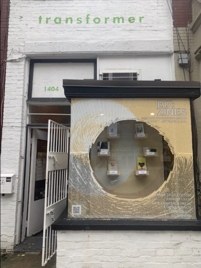 A new online recap highlights Transformer’s summer programs, which included “E17: Zines,” a storefront window installation consisting of new zines created by local artists. (Photo courtesy of Transformer)