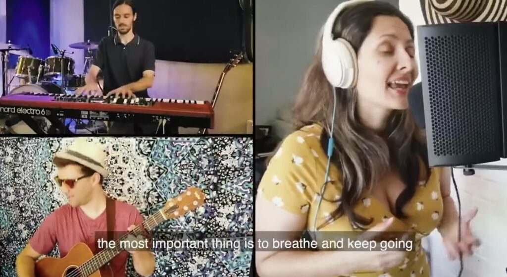 Thecrossover.tv, a collaborative music project that highlights musicians in DC, performed in both Spanish and English. In separate Zoom boxes, the artists played drums and guitars, and sang lyrics about unity: “I know that everything will be alright as long as we are united.”