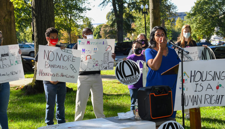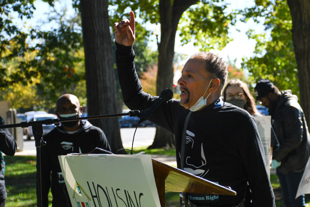 As evictions pick up locally and nationally, approximately 40 people rallied outside the U.S. Capitol on Oct. 20. Several members of Congress joined them.