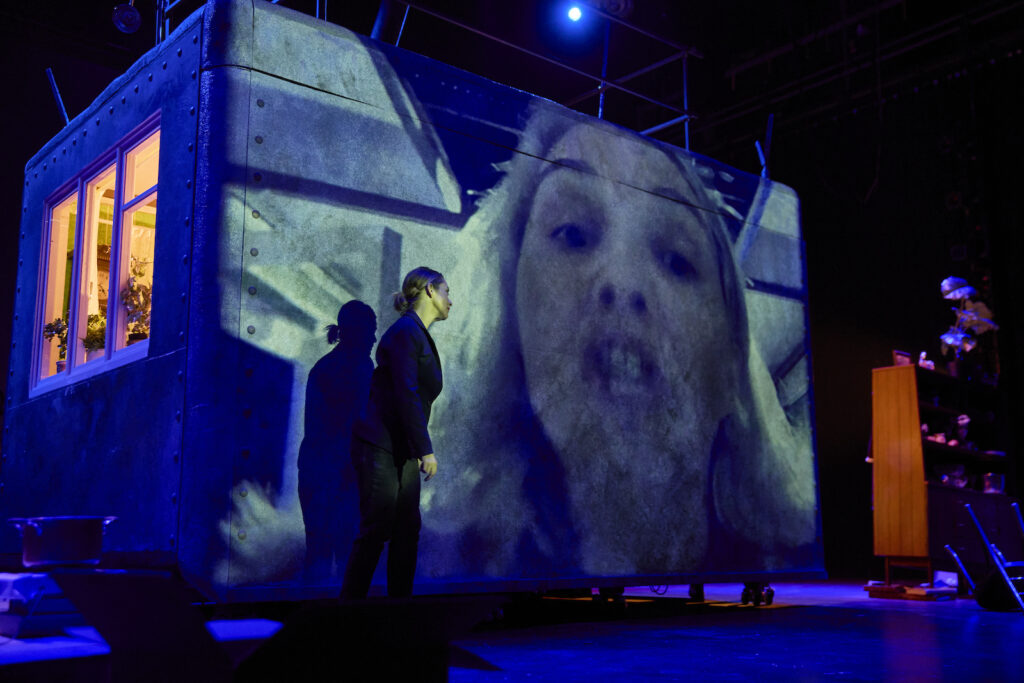 Denisova, Urnov and the rest of the creative team had to find a way to strike the right balance among all of these different elements. The result is a production that features a rotating set piece, a soundtrack that ranges from classical music to disco, approximately 100 custom-made projections, actor Lindsay Smiling playing a dozen characters, and deepfakes of the leaders of France and Germany.
